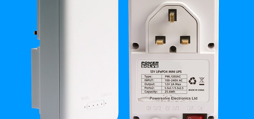 Powersolve announces a new plug-top “mini” UPS that provides 2 x 12V DC outputs. Model PML1202AC is a battery backed wall mount AC-DC adaptor, capable of giving battery back up in the event of an AC mains failure. Suitable for all types of low powered electronic equipment such as CCTV cameras, security systems, electronic door locks, routers and VoIP phones systems and many many more applications. The 2 x 12V DC output can provide a total of 24W. The unit features 2 x 4000mA lithium batteries giving a capacity of 25.6Wh.