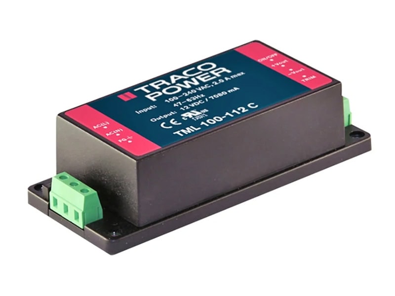 TML100C Series The TML 100C series modules are very compact 85–100 Watt power supplies in a fully encapsulated plastic case. Active power factor correction and high efficiency acros...