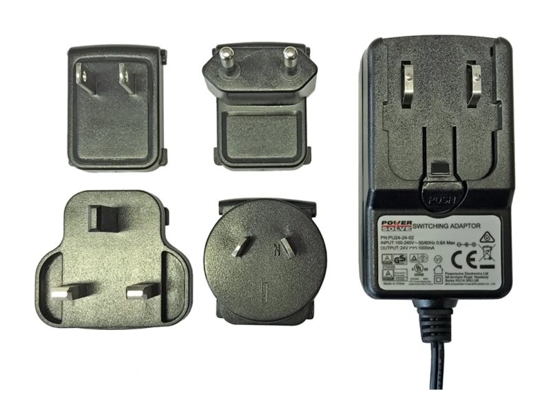 PPS60 Series Interchangeable AC plug head adaptor, 12V to 24V DC outputs at 60W