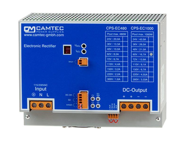 CPS-EC1500 Series 1500W Precision DC Rectifier 1500W Precision DC Rectifier DIN-Rail Battery Charger, A/V Adjustable Industrial Power DC output versions available 24V, 36V, 48V, 60V, 72V, 110V, 150V, 220V or 400...