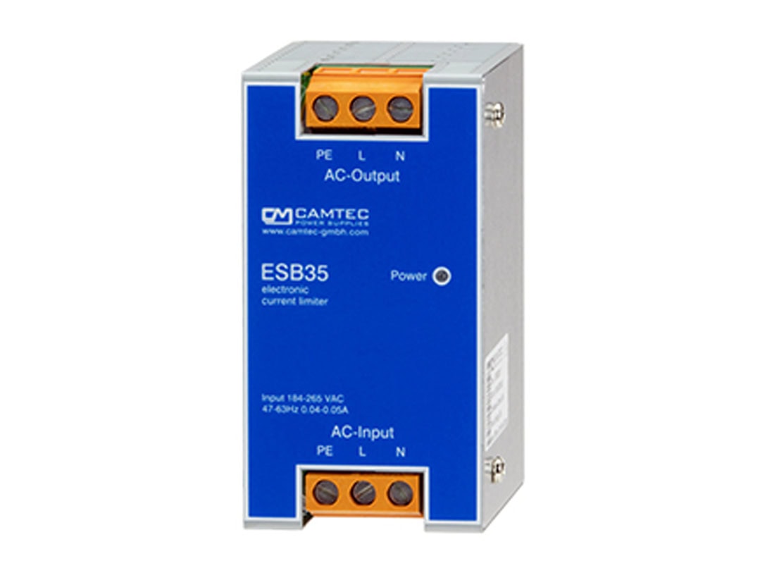 The ESB00351 is an industrial grade inrush peak current limiter for high loads in LED-applications, complex automation systems and in the machine building. The ESB00351 offers effective and interference free operation with capacitive loads. It is simple to integrate into existing equipment. The ESB00351 is self-powering and does not require an external power supply.