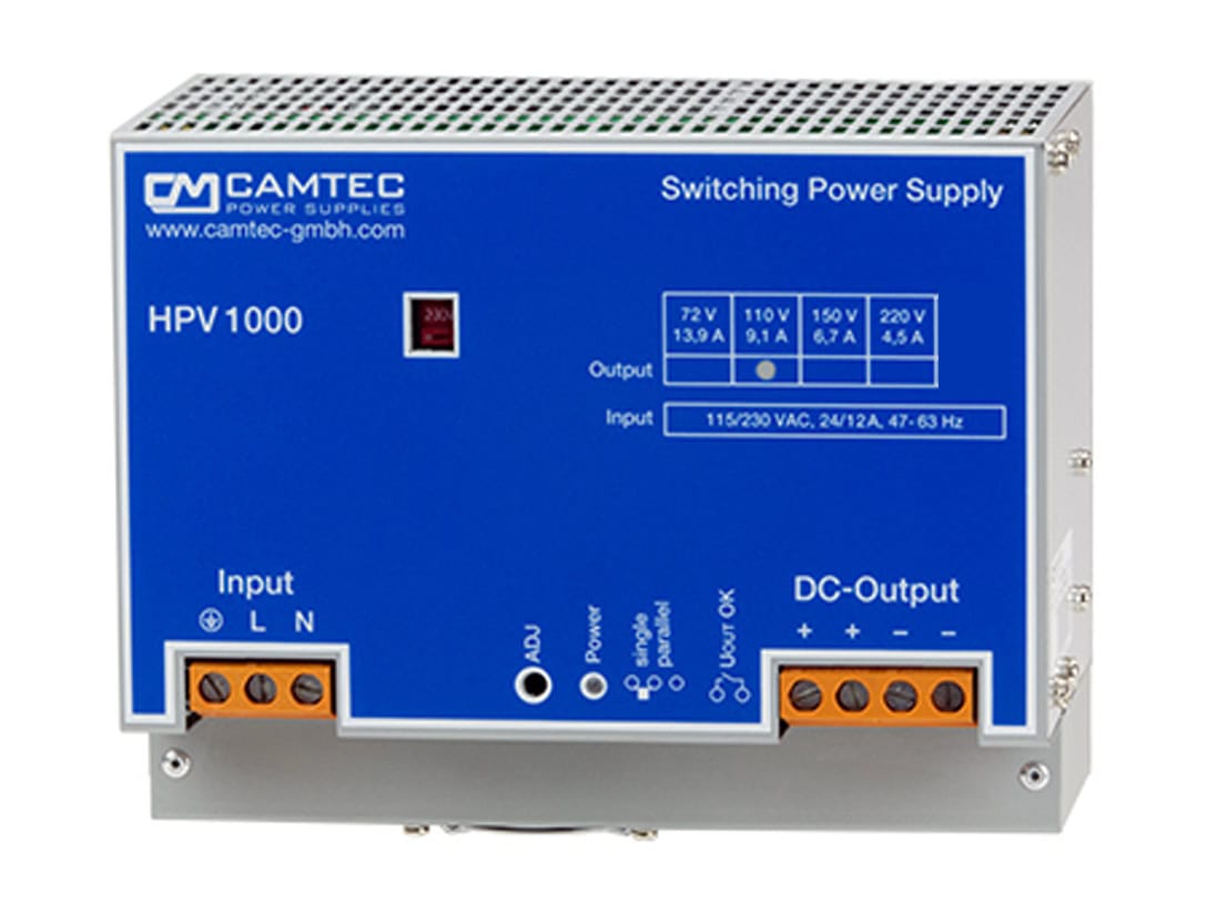 TS35mm DIN-Rail mains supply with high output voltage of 72V, 110V, 150V or 220V DC output, with wide adjustment range.