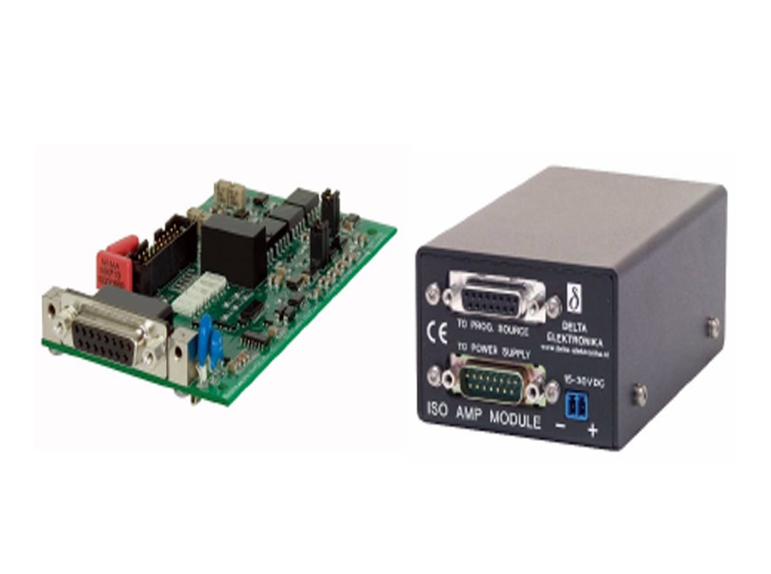 The ISO AMP amplifier has selectable 0-5 V and 0-10 V signal levels. Isolated programming and monitoring of U, I and status signals.