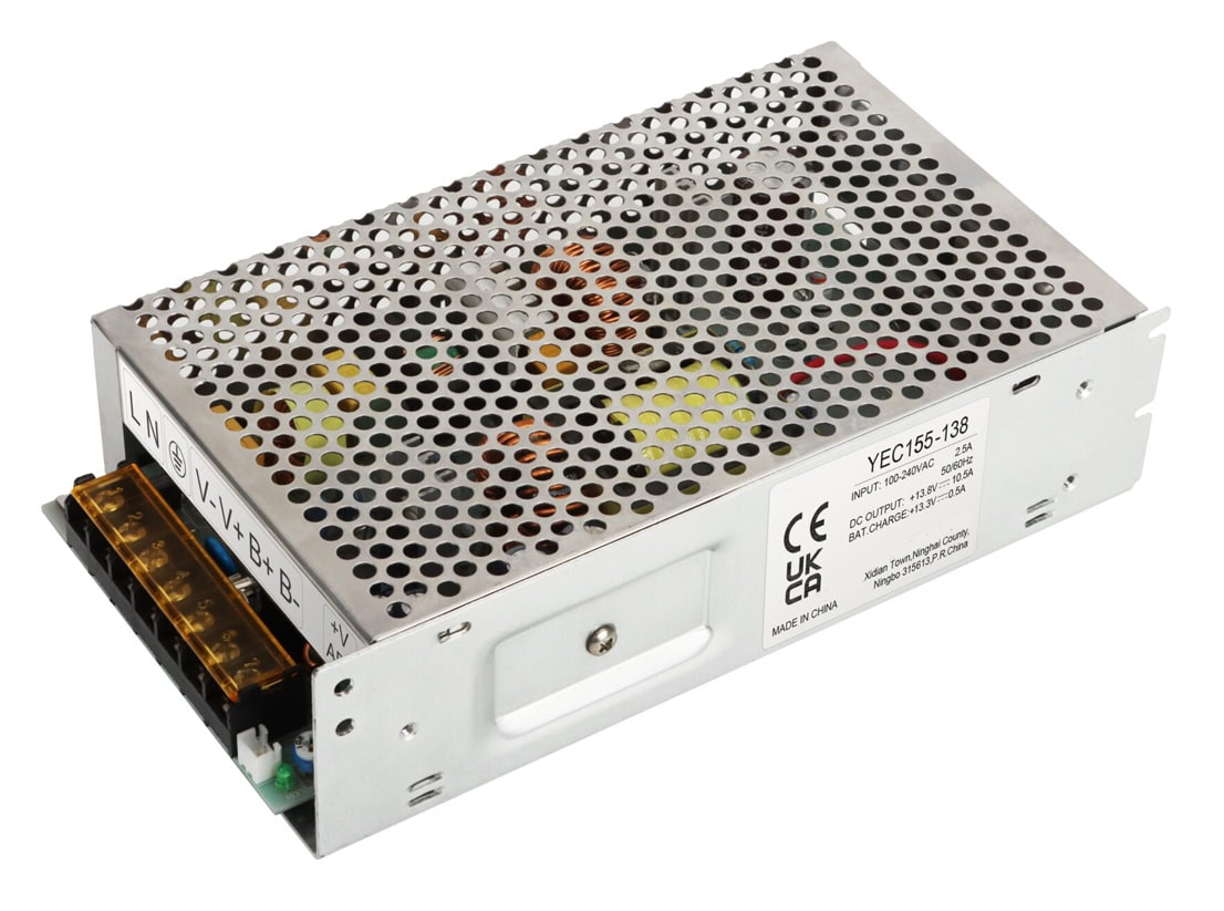 The YEC155 Series is a range of 155W battery backed enclosed power supplies available with nominal 12V or 24V DC outputs for 12V or 24V battery Systems.